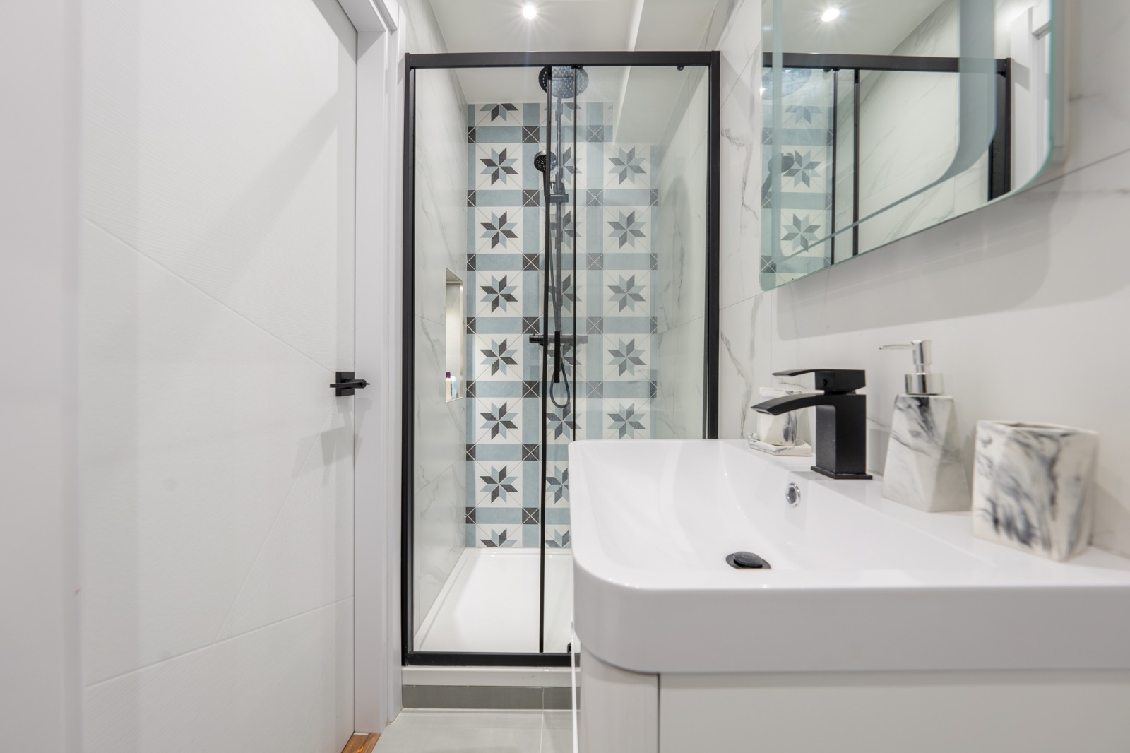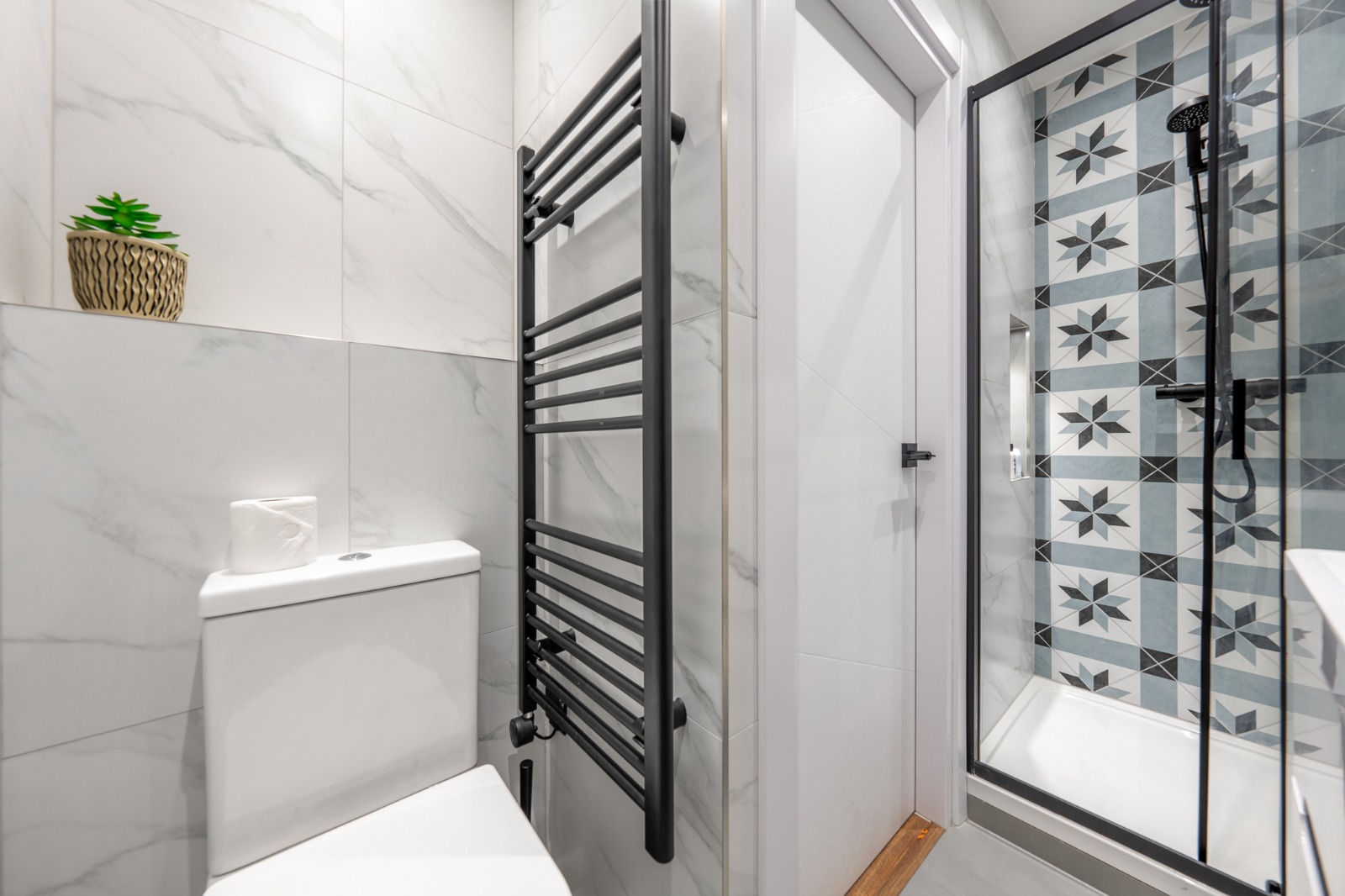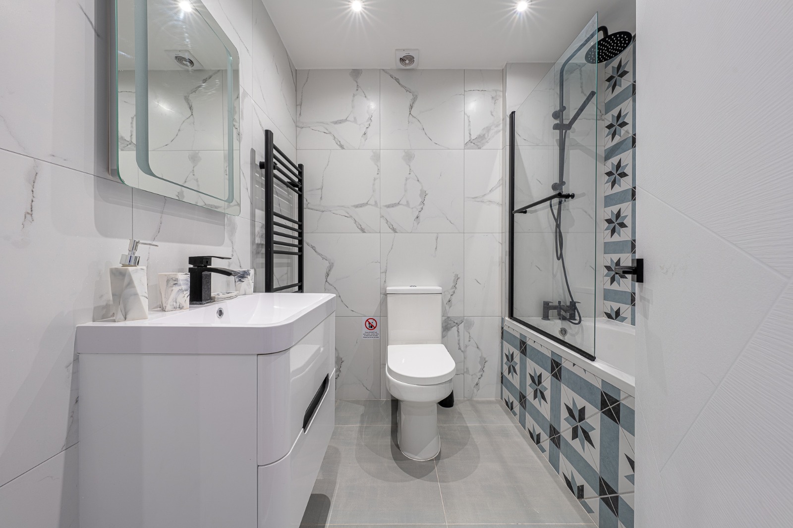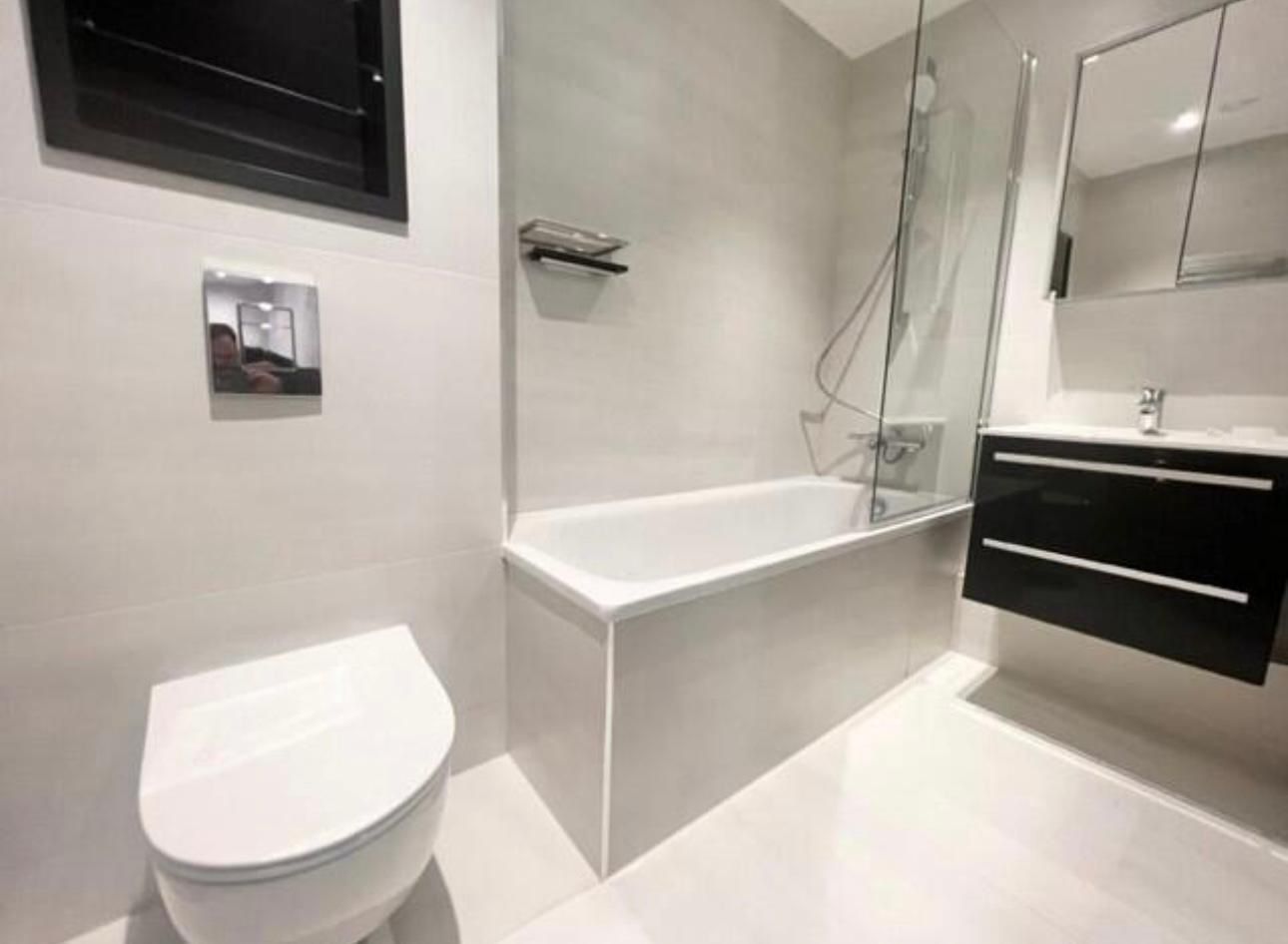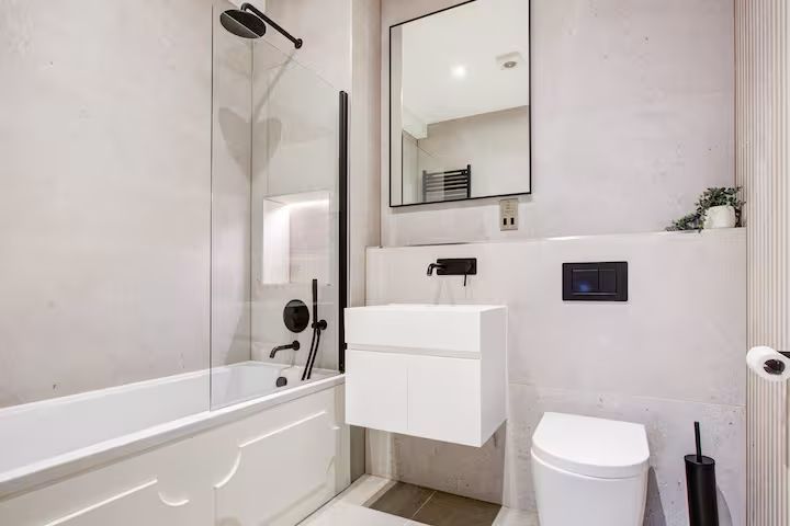 We reconfigured the layout for better flow, installed bespoke cabinetry, introduced marble tiling and underfloor heating, and upgraded to modern water-efficient fixtures.
