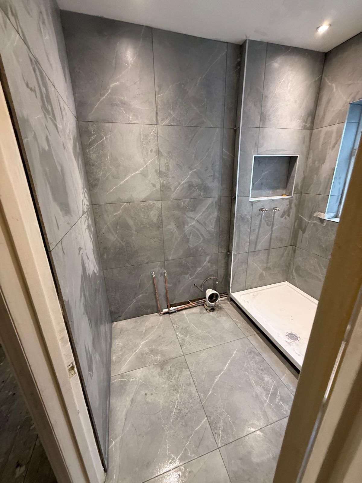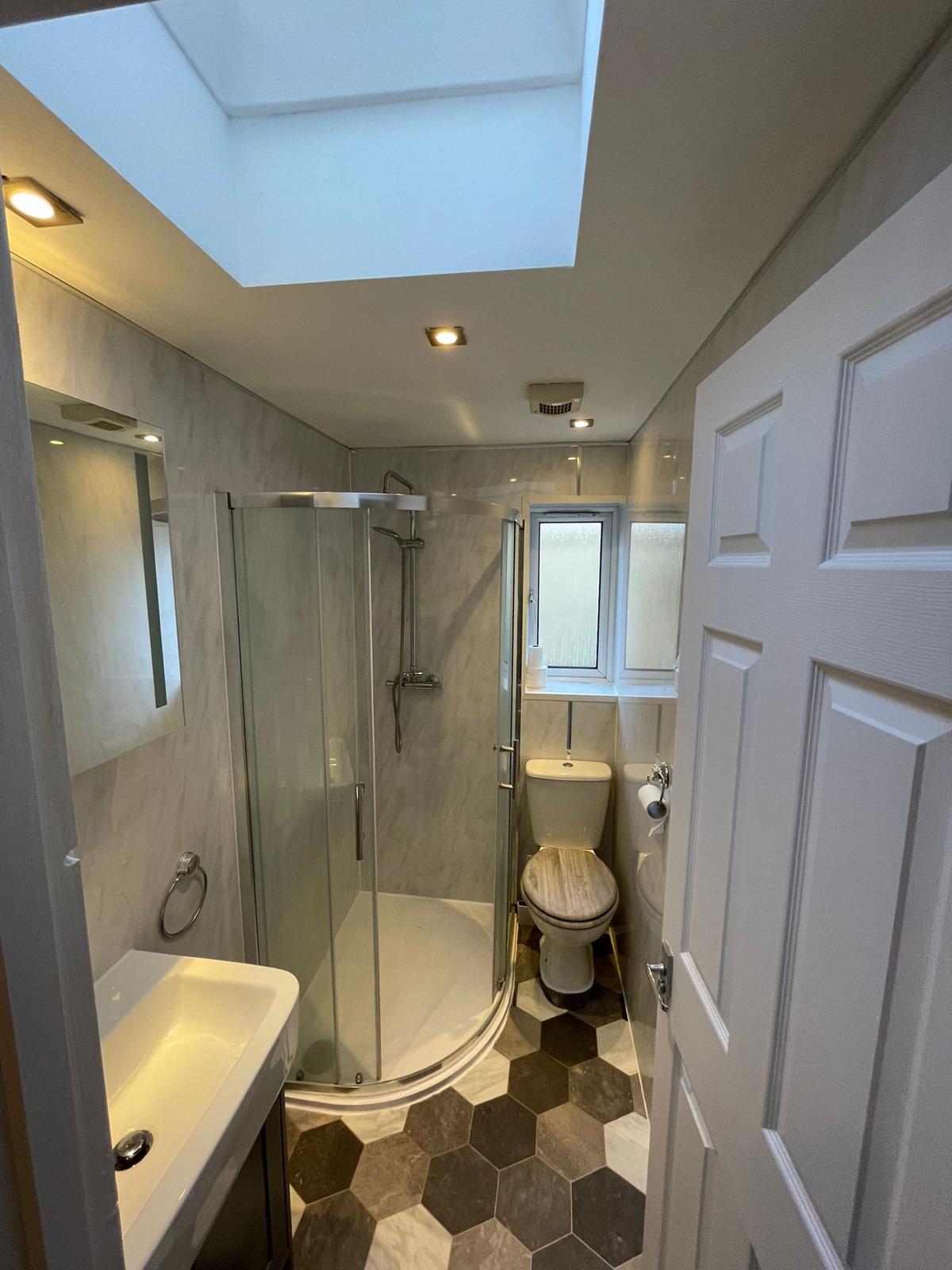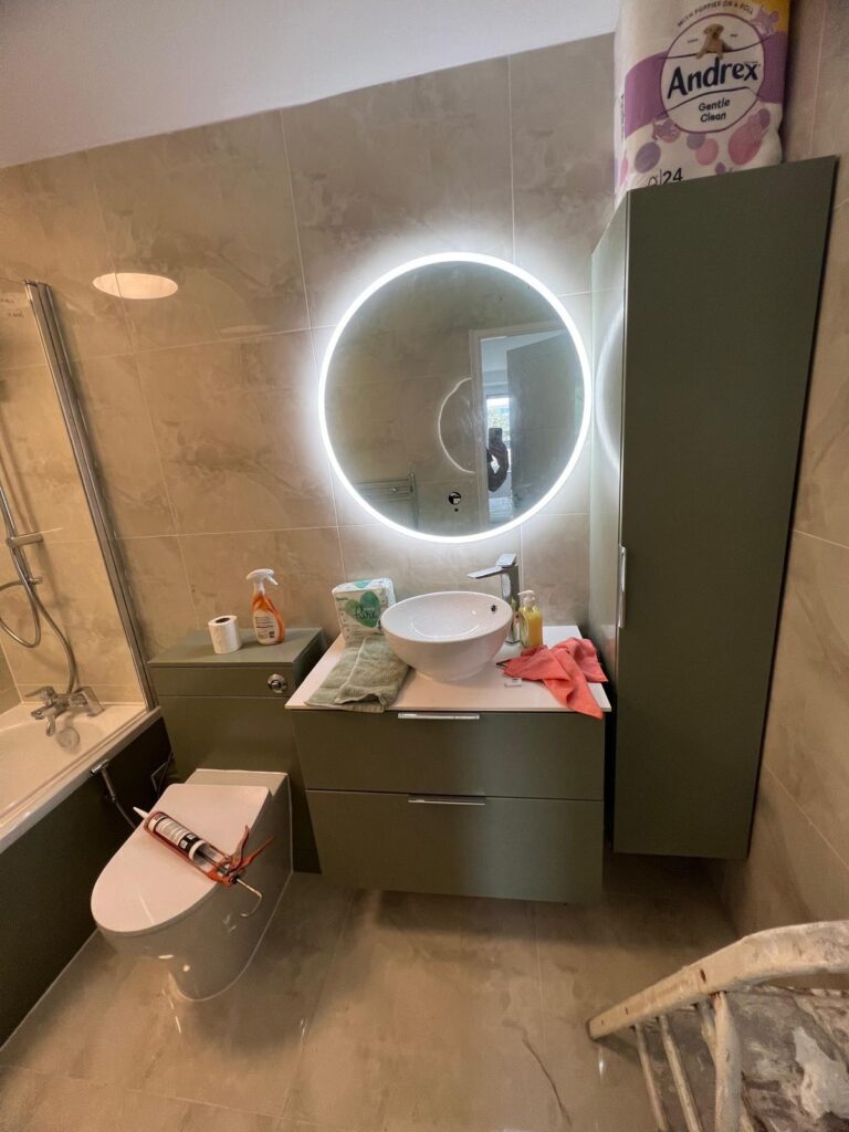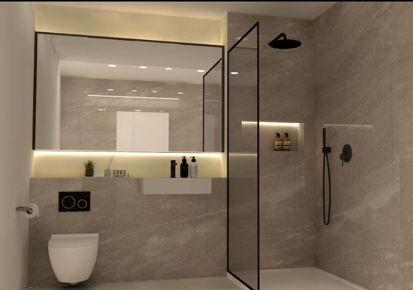 The existing bathroom felt dark and cramped, with poor lighting, old fittings, and insufficient storage space.